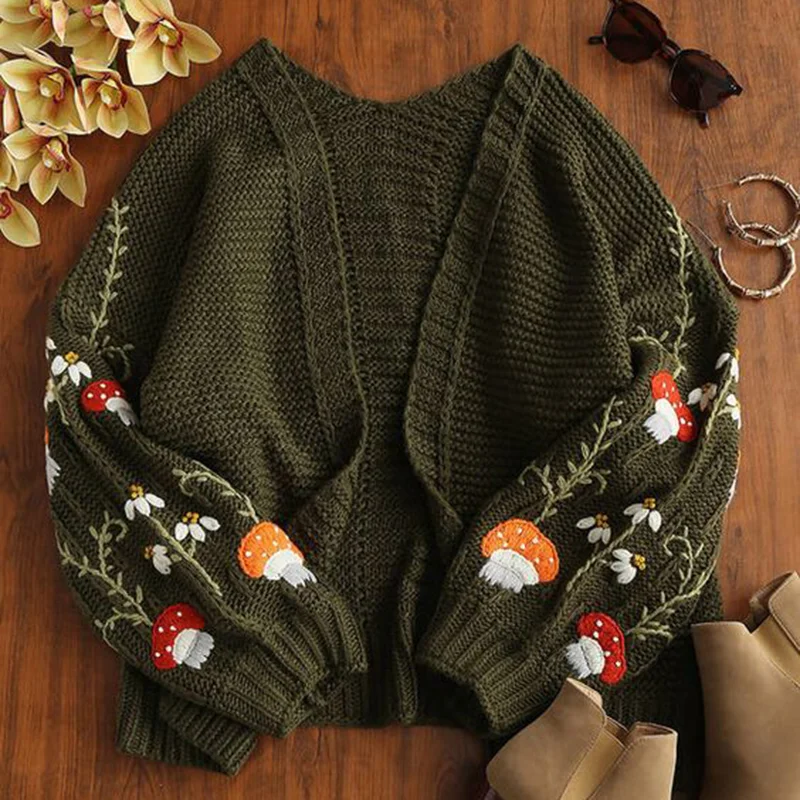 Vintage Mushroom Forest Pattern Cozy Warm Sweater